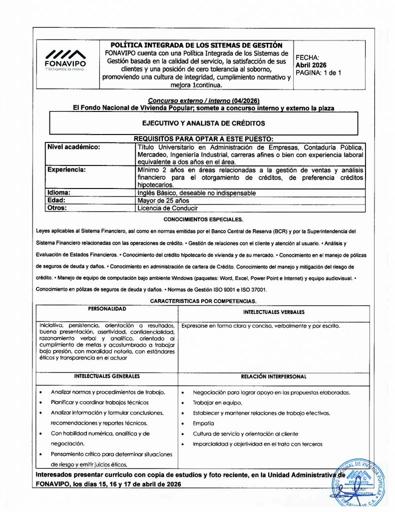 En FONAVIPO, trabajamos cada día para transformar la vida de las familias salvadoreñas, y queremos que tú seas parte de este gran equipo.